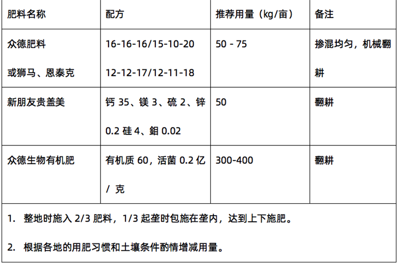 ?。?)推薦施肥套餐(根據(jù)目標產(chǎn)量、地域、品種、地力等適當(dāng)調(diào)整)
